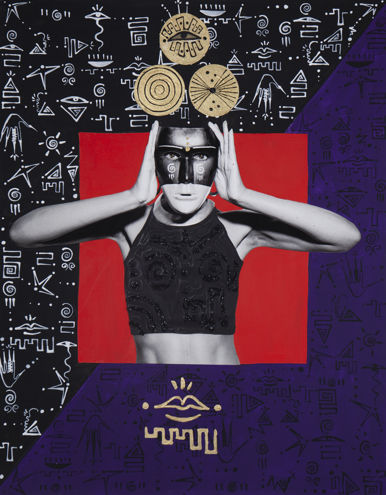 Nichole Washington creates works over a variety of mediums exploring identity and spirituality. The unique symbols painted in her art are used as a secret form of communication and protection. They are inspired by Egyptian hieroglyphs and Adinkra symbols from West Africa. She takes inspiration from her personal journey and mythical tales.